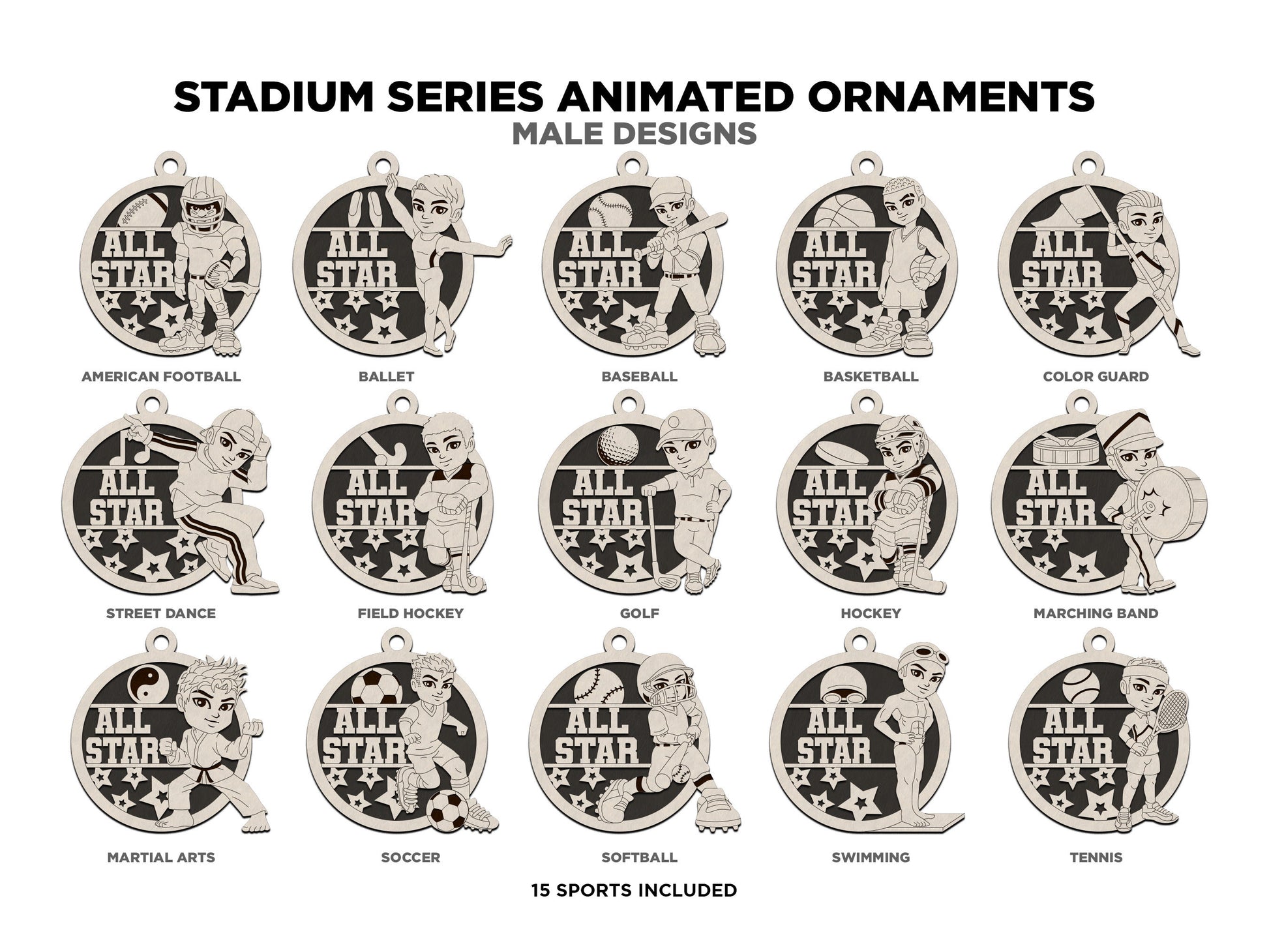 Taking the form of a classic baseball, the ornament is adorned with precise laser-cut details, capturing the essence of the sport. The stitching on the baseball is meticulously recreated, and perhaps there are additional elements such as miniature baseball bats or gloves to enhance the overall design. The wood's natural grain adds a touch of authenticity to the ornament.
