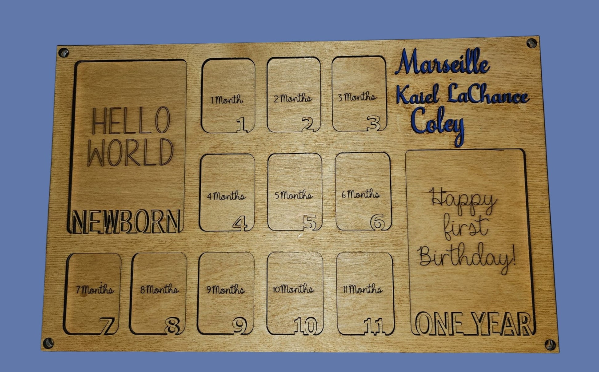 Create a cherished and heartfelt keepsake with Baby Fame customized! Combining your little one's name and a picture for every month, cut from top-notch birch wood and acrylic 16x10.