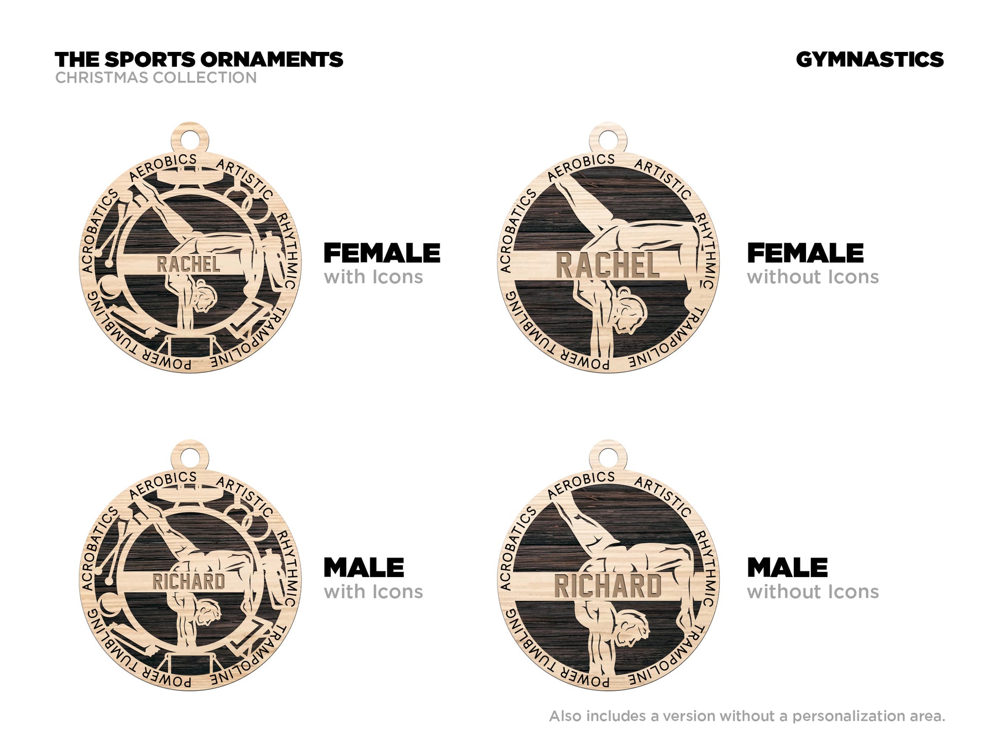 Personalization: Make these ornaments/magnets truly special by adding the name of your gymnast or your team's name. We offer two design options: