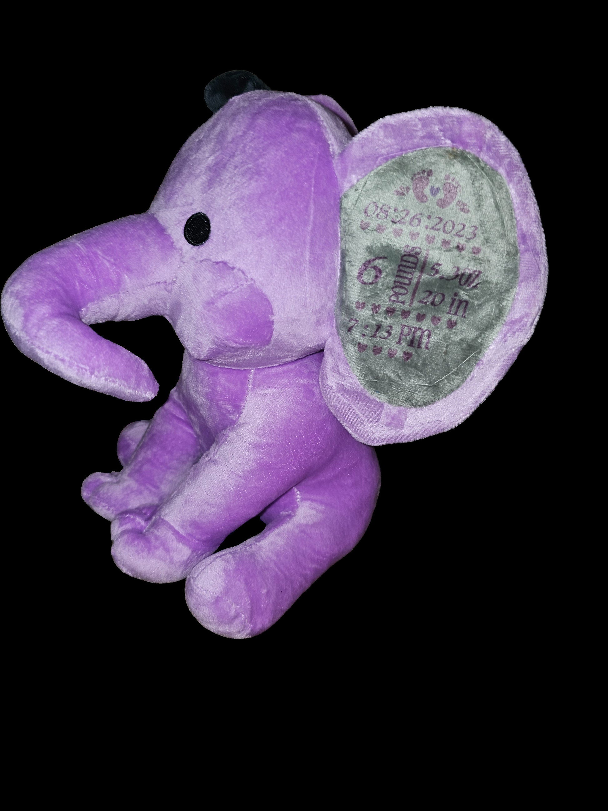 Celebrate life's beautiful moments with the Keepsake Elephant Plush. A timeless and personal addition to any nursery or child's room, this plush friend is a cherished reminder of the joy that comes with the arrival of a new bundle of joy.