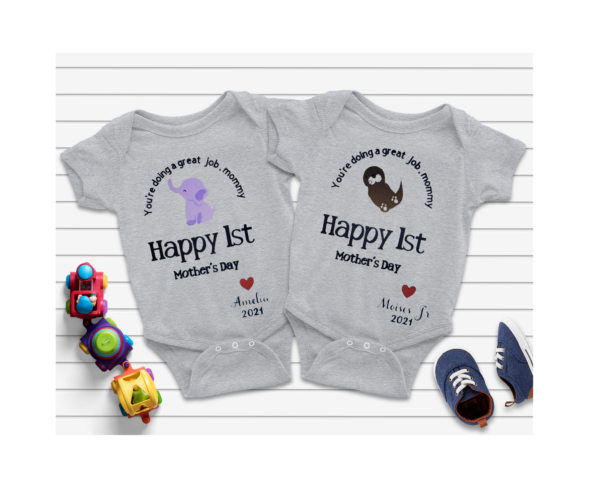 Featuring adorable Mother's Day-themed designs, such as tender hearts or blossoming flowers, this onesie adds an extra touch of charm to your baby's first Mother's Day attire. The airy fabric and relaxed fit are tailored for keeping little ones content and cozy, making it the ideal choice for all-day wear during those precious moments.