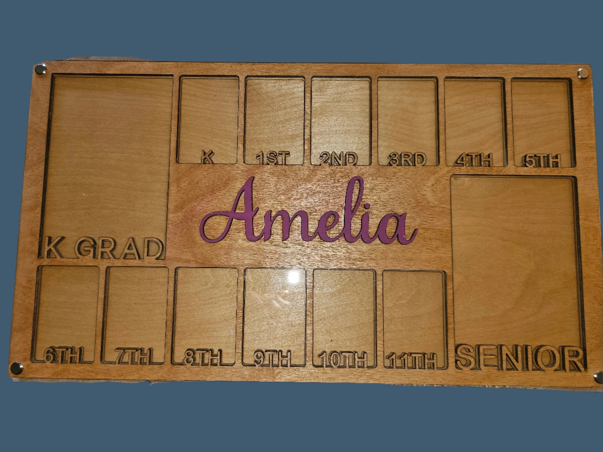Elevate your child's journey with School Fame! This 18x10 frame, crafted from high-quality birch wood and acrylic, captures all their school memories in one place. Say goodbye to scattered photos and hello to a lifetime of cherished nostalgia. Perfect for preserving their journey from pre-K to 12th grade or K to 12.
