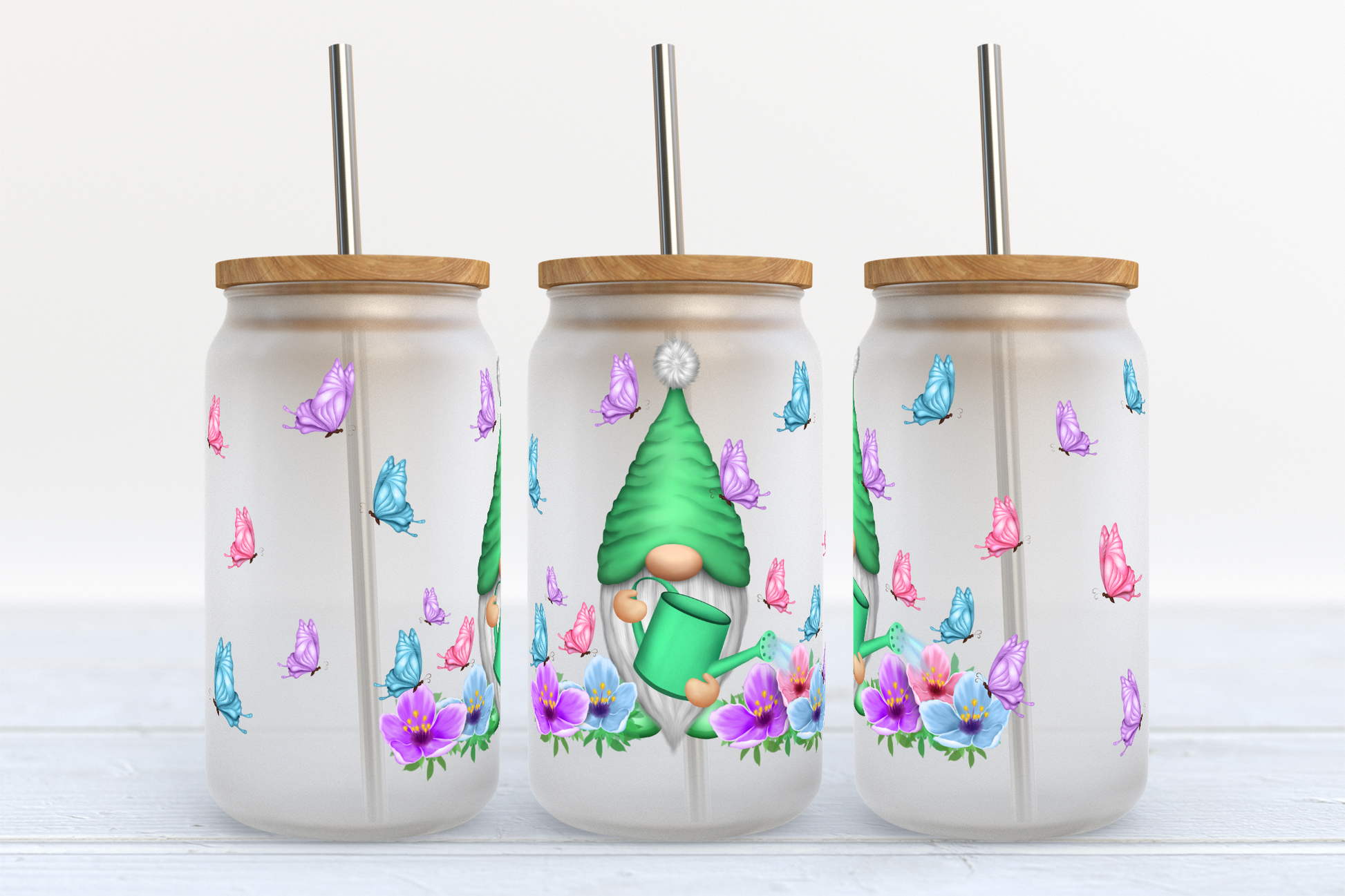 Embrace the charm of spring and the whimsy of gnomes while enjoying your cold drinks in the "Happy Spring with my Gnomies" Glass Can Tumbler. Order now and infuse your drink time with the vibrancy and joy of the season!