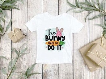 Introducing "The Bunny Made Me Do It" T-Shirt – a whimsical Easter-themed delight for your little one! 🐰👶 This toddler-sized tee features a playful animal-themed design that captures the joy of the season.