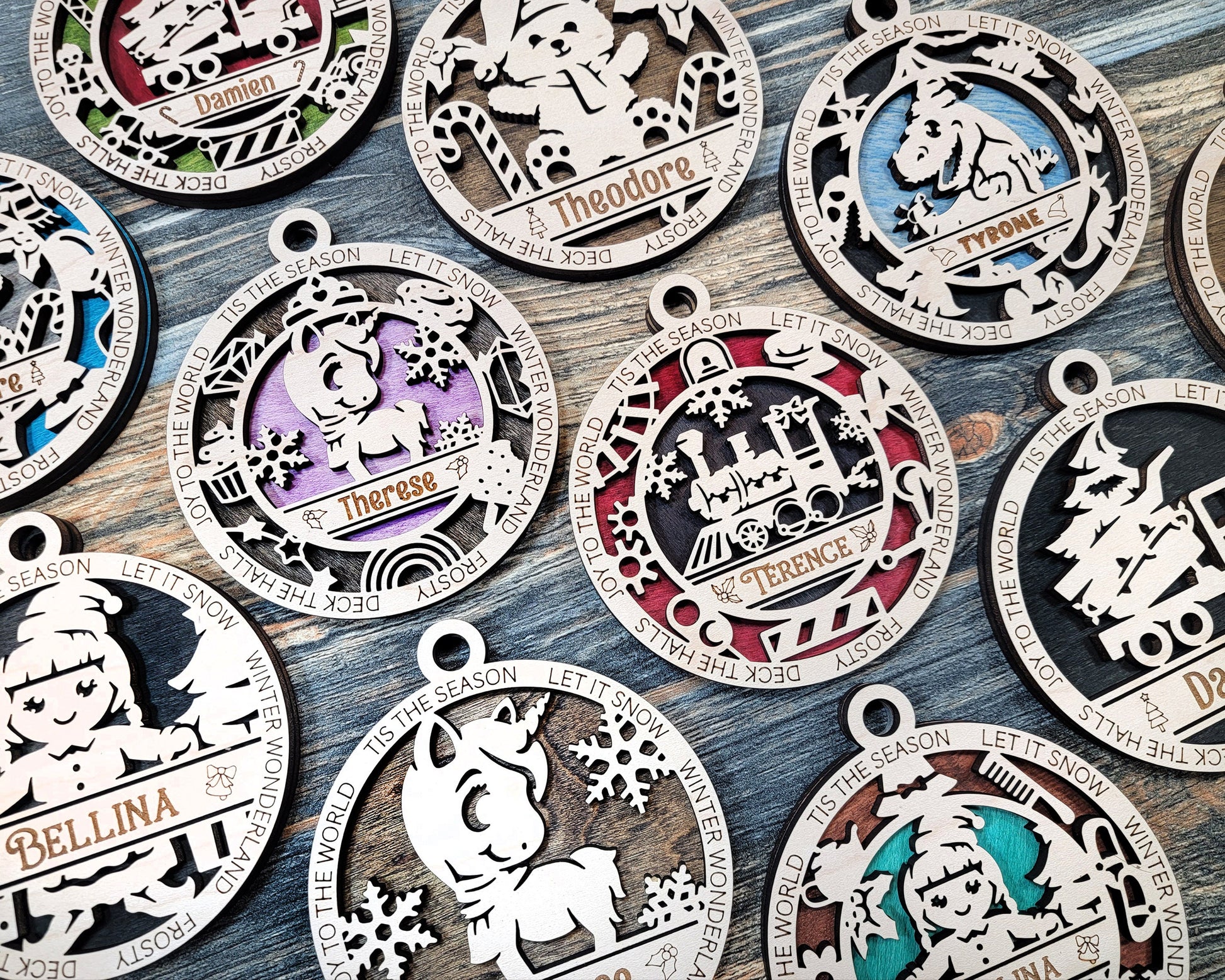Tiny Tots Personalized Christmas Ornaments are a delightful addition to your holiday decor, handcrafted with care and attention to detail. These charming ornaments are made from high-quality wood and feature laser-cut designs that add a touch of elegance and personalization to your Christmas tree.