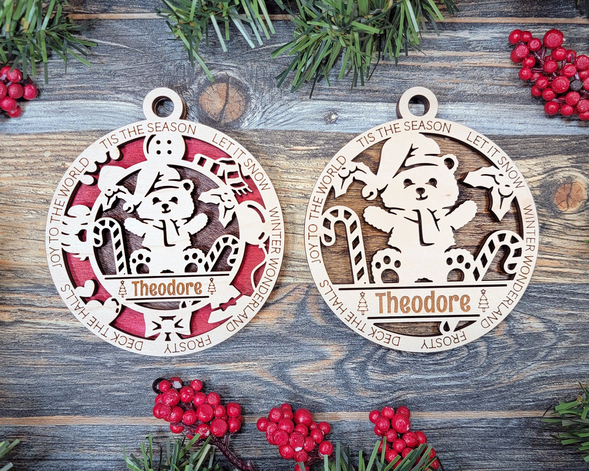 Teddy Bear: The teddy bear ornament is a heartwarming addition, depicting an adorable laser-cut teddy bear with intricate details like fur texture and a sweet expression.