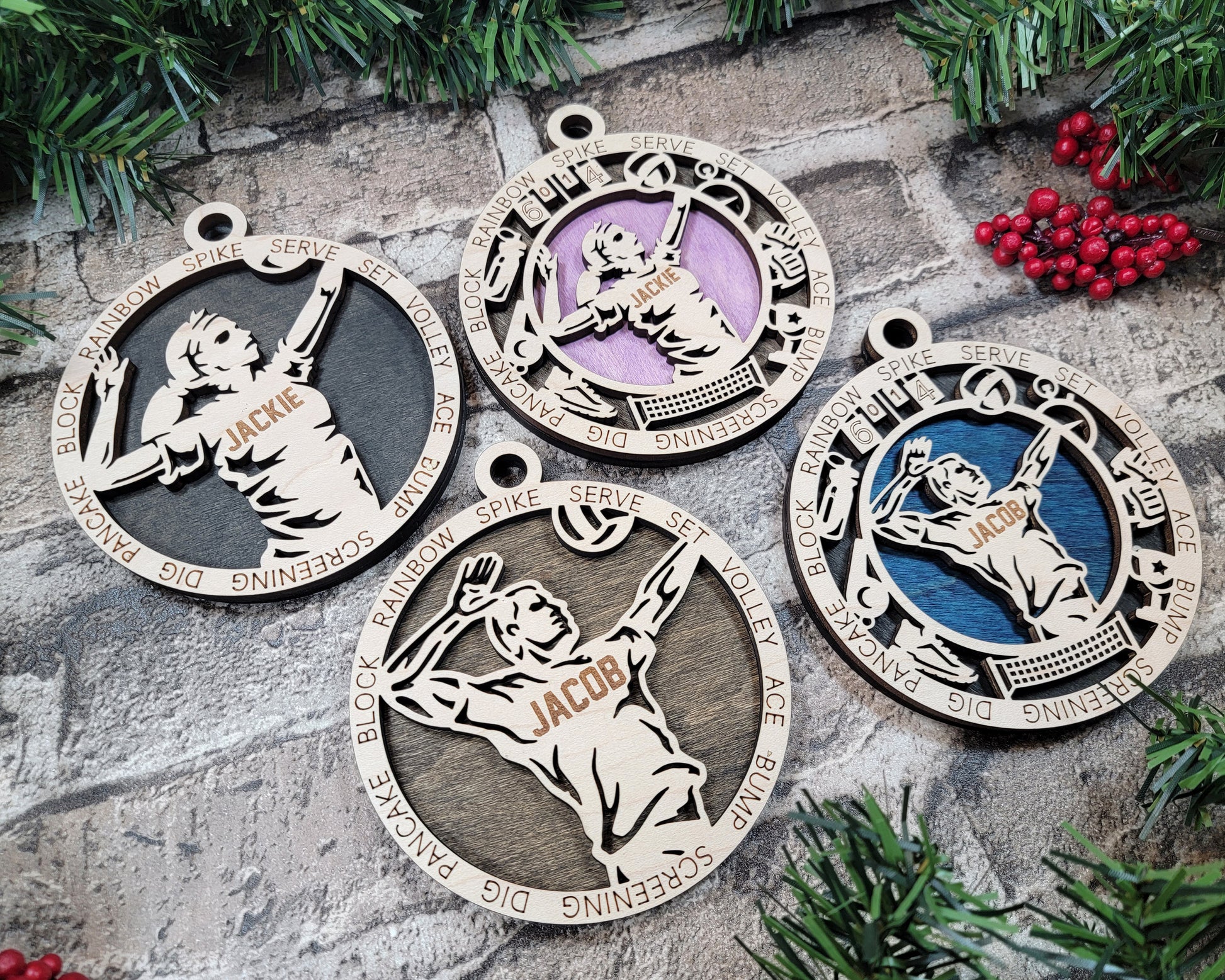 Design: Our ornaments/magnets feature an engaging design showcasing a volleyball player from the front. You have the option to personalize them with the person's name or your volleyball team name. We offer both male and female volleyball player versions to suit your preference. The magnet version, measuring 4 inches in diameter, does not include the top loop for hanging.
